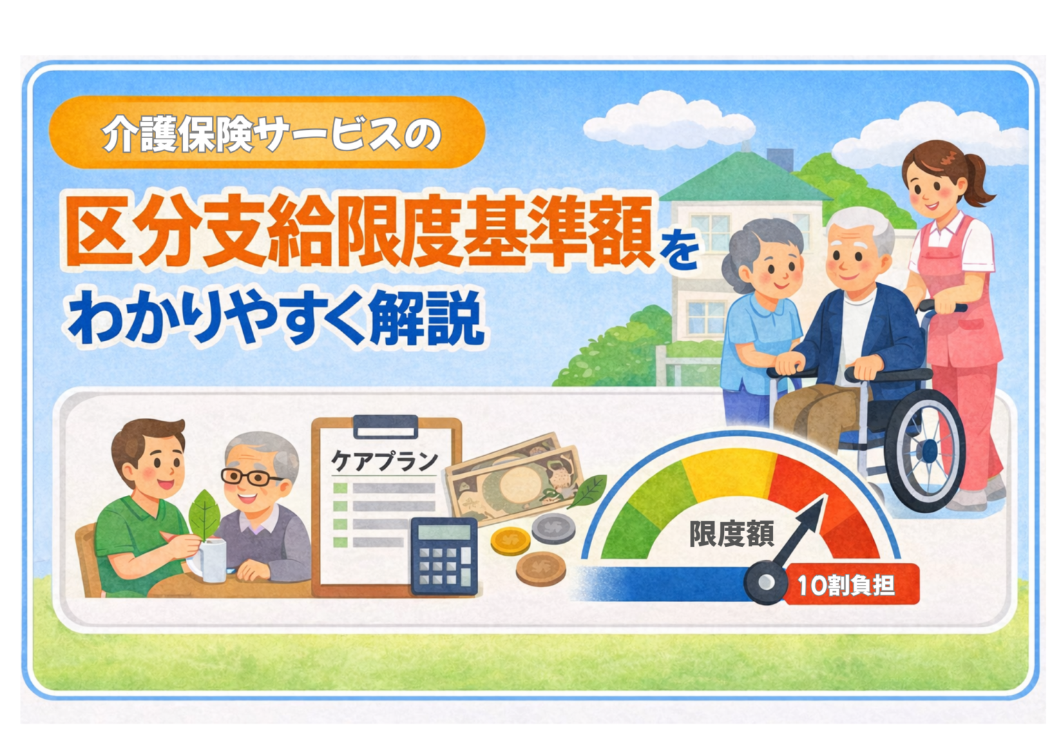 介護保険は、必要な人が必要な支援を受けられるように、敢えて利用できるサービス量に上限(区分支給限度基準額)を設けています。