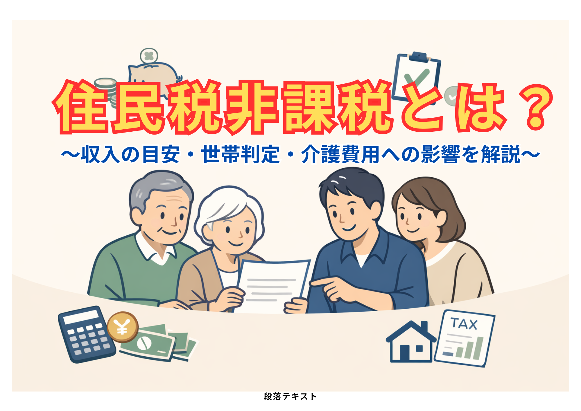 住民税非課税は、単なる税金の話ではなく、介護費用の負担に直結する大事なポイントです。