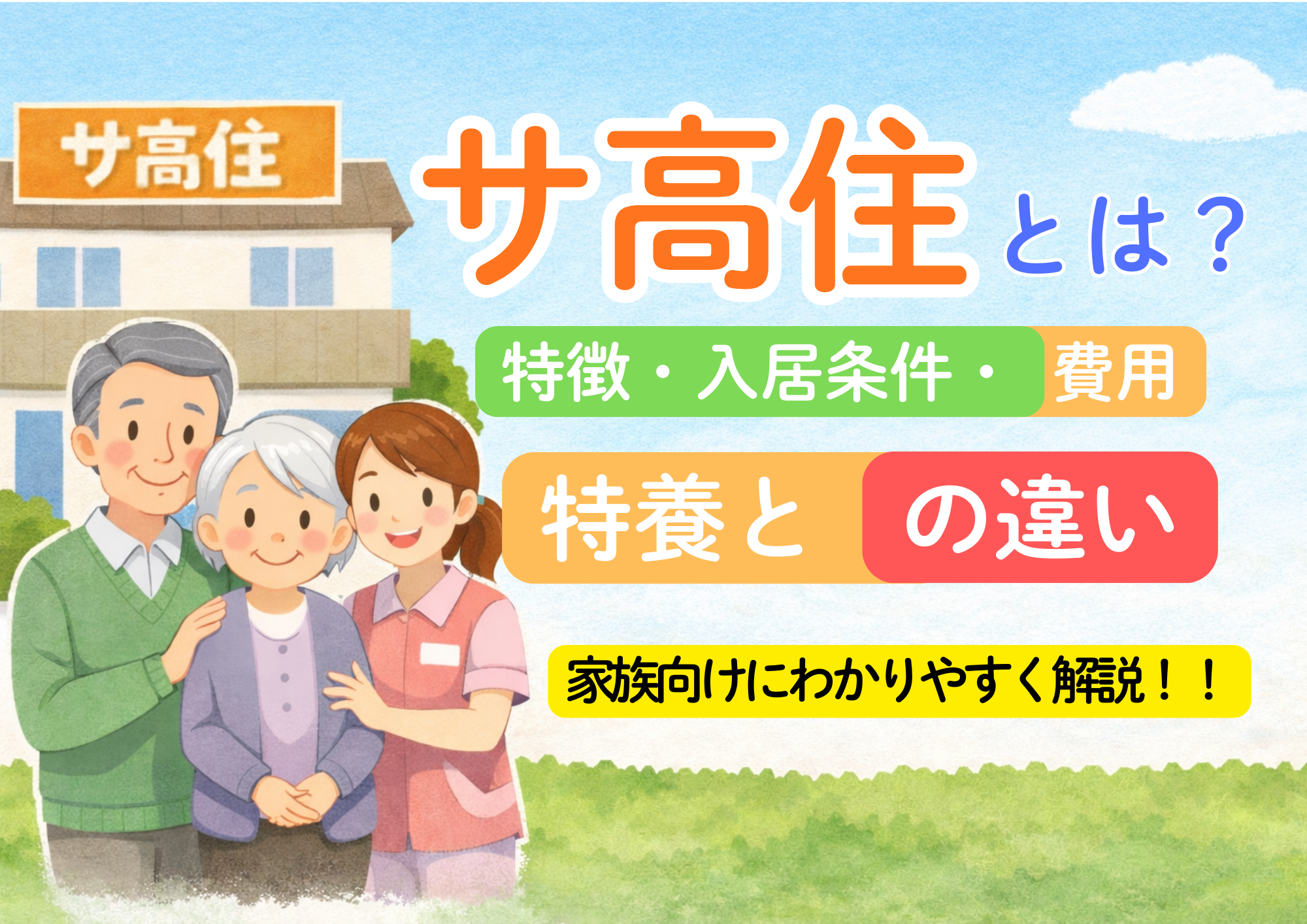この記事では、サ高住とは何か、入居条件、費用、受けられるサービス、特養との違いを、家族向けにわかりやすく解説します。