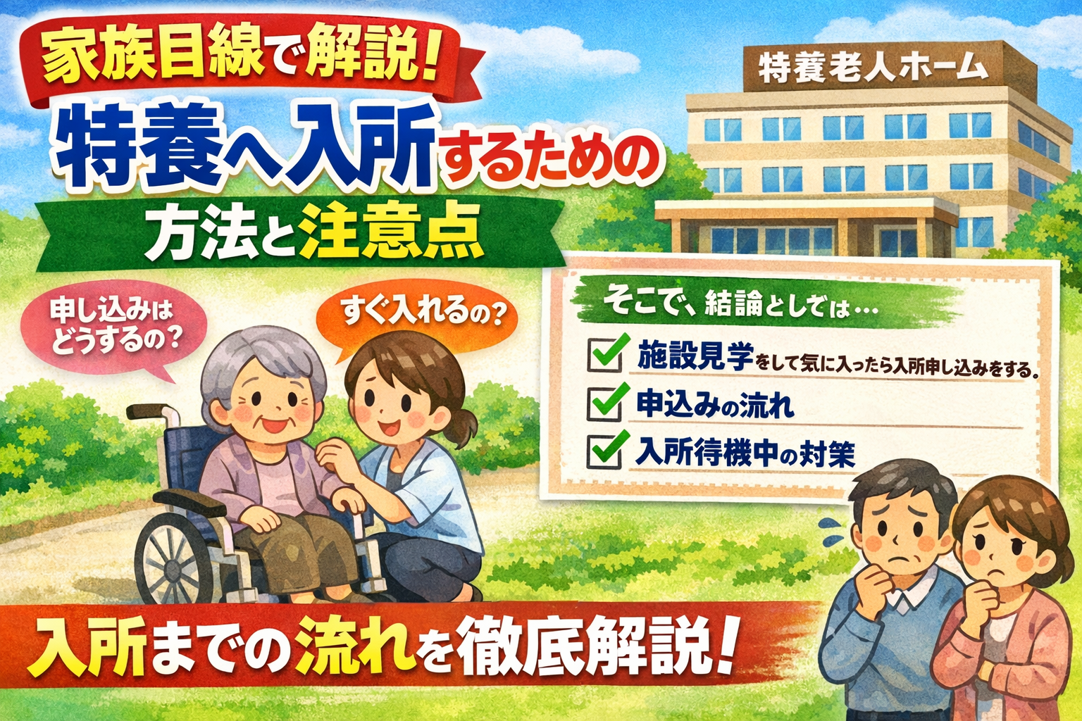 書類の書き方など、分からないことは施設職員に聞くのが最短です。そのうえでこの記事では、特養入所に向けて「何から始めて、何に注意するか」を整理します。